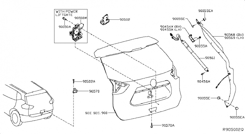 Обшивка двери багажника Nissan Rogue T32 QR25DE 2014- 909004BA0B 909004BA0A |